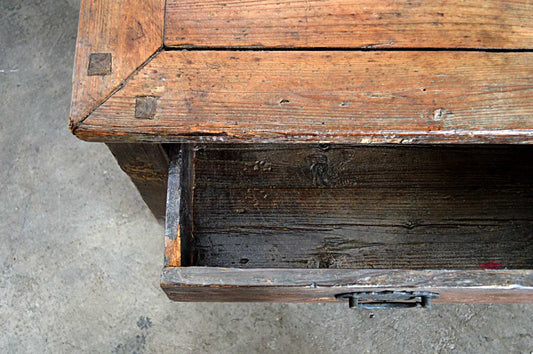 Vecchio tavolino cinese con cassetto in Legno di Olmo finitura naturale