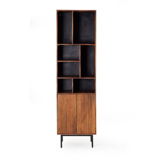 Mobile libreria colonna in legno massiccio design scandinavo gambe in acciaio 2 ante