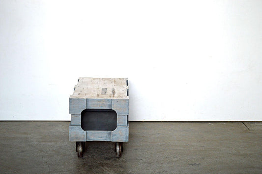 Tavolo Caffè Industrial con ruote in Legno Massello Decapato - BH208