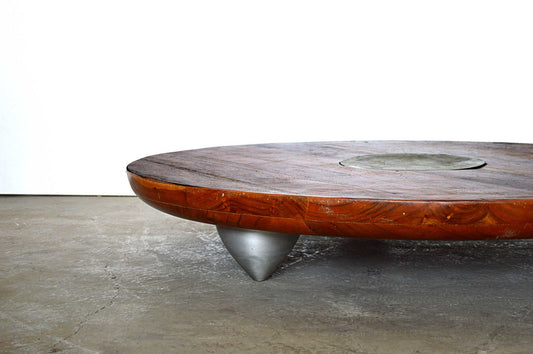Tavolo basso zen in Acacia Legno Massello e Placca di Alluminio diametro 120