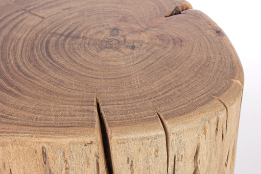 Sgabello industrial rustico in ceppo in legno massiccio gambette in ferro h35