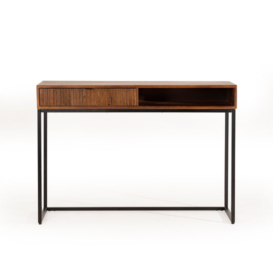 Consolle legno massiccio design scandinavo gambe in acciaio 1 cassetto